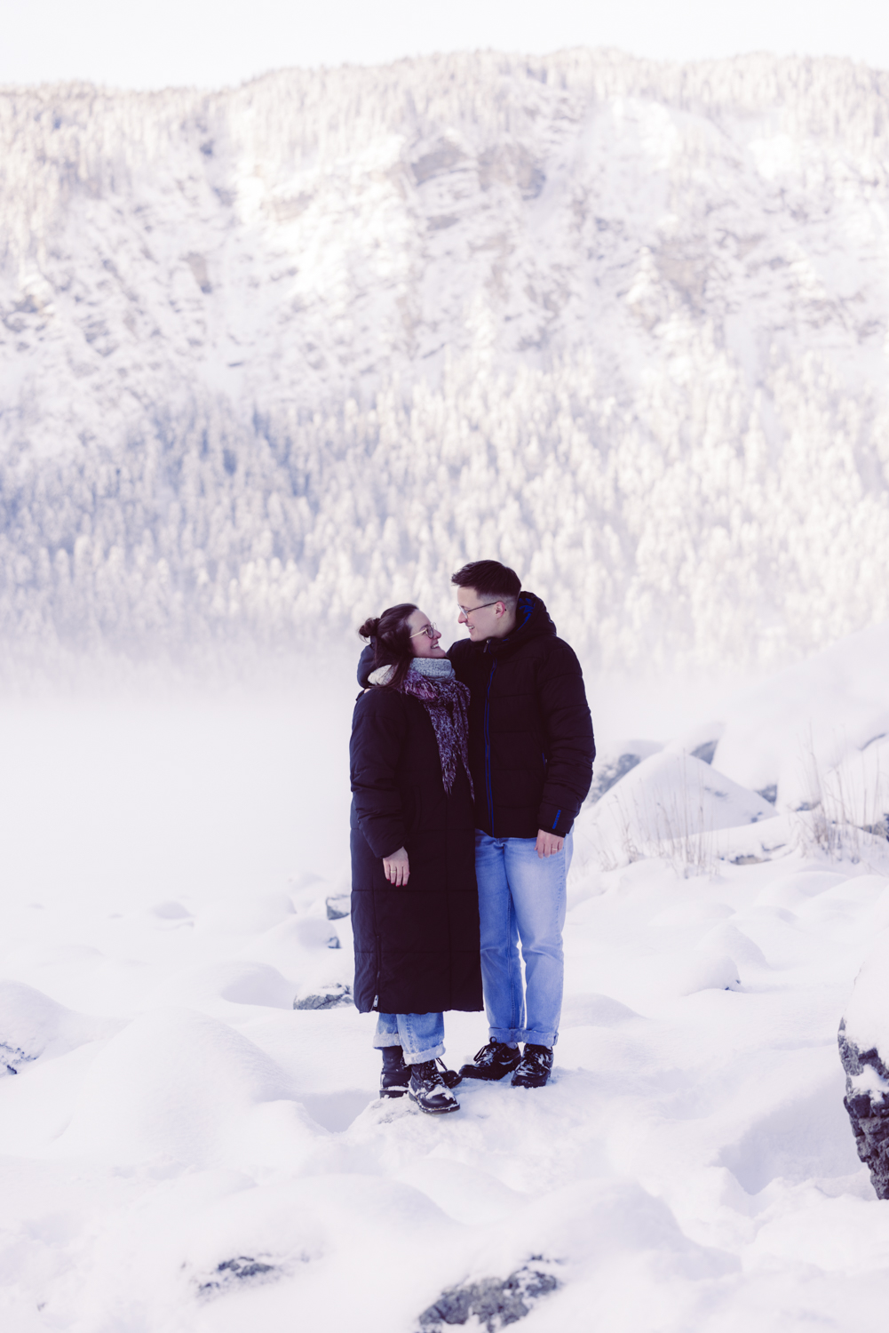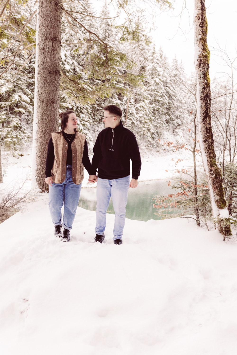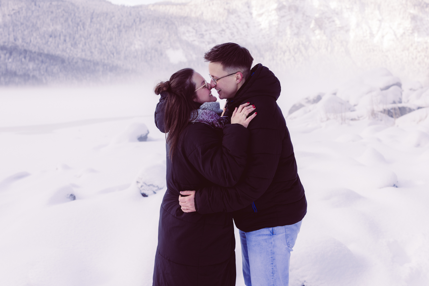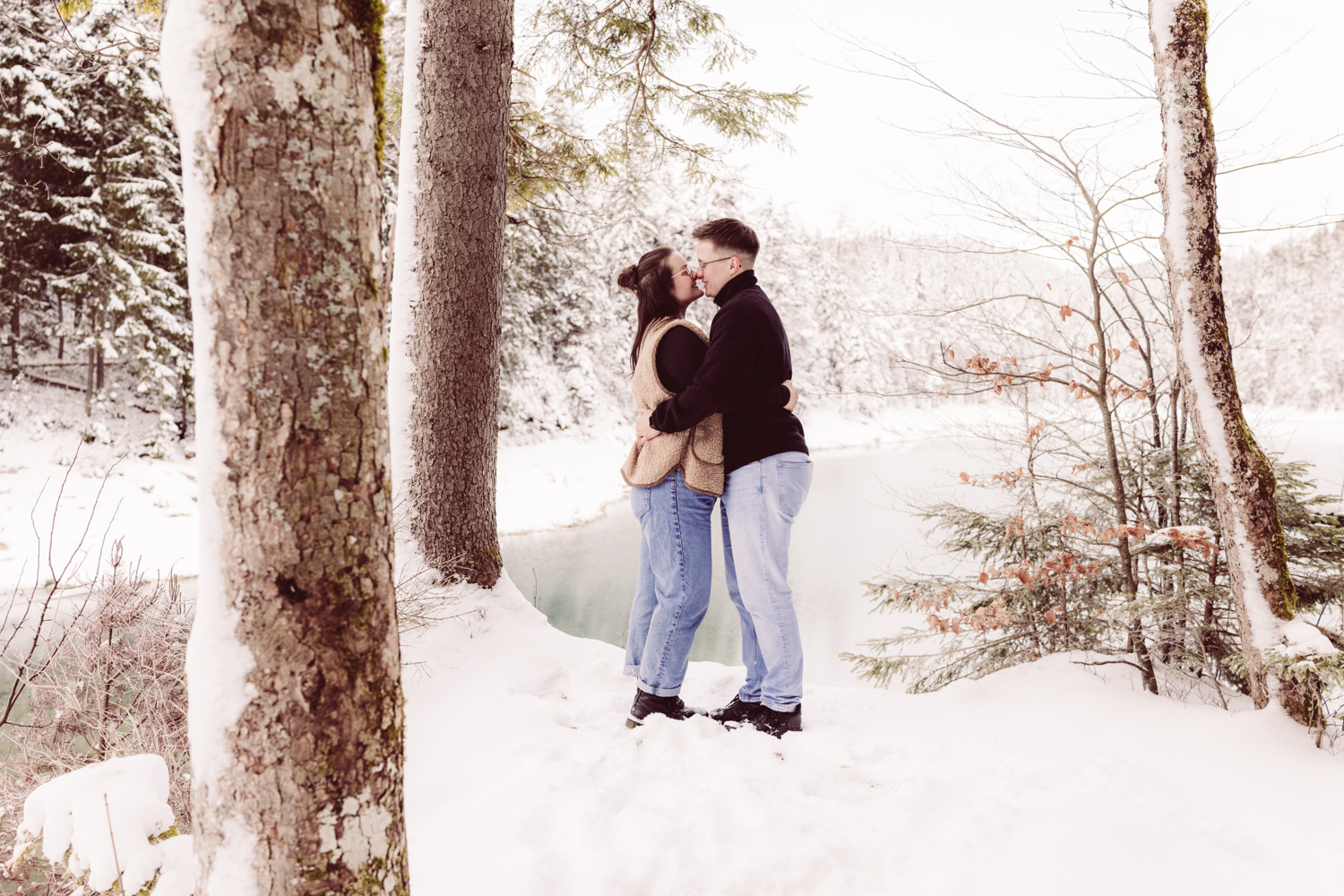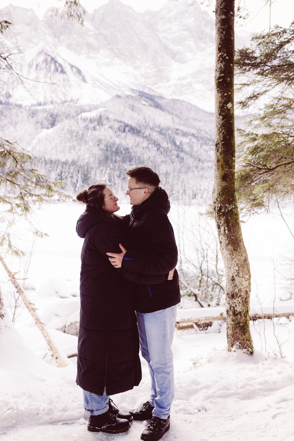 Paarshooting in wunderschöner Umgebung: dem winterlichen und eingeschneiten Eibsee