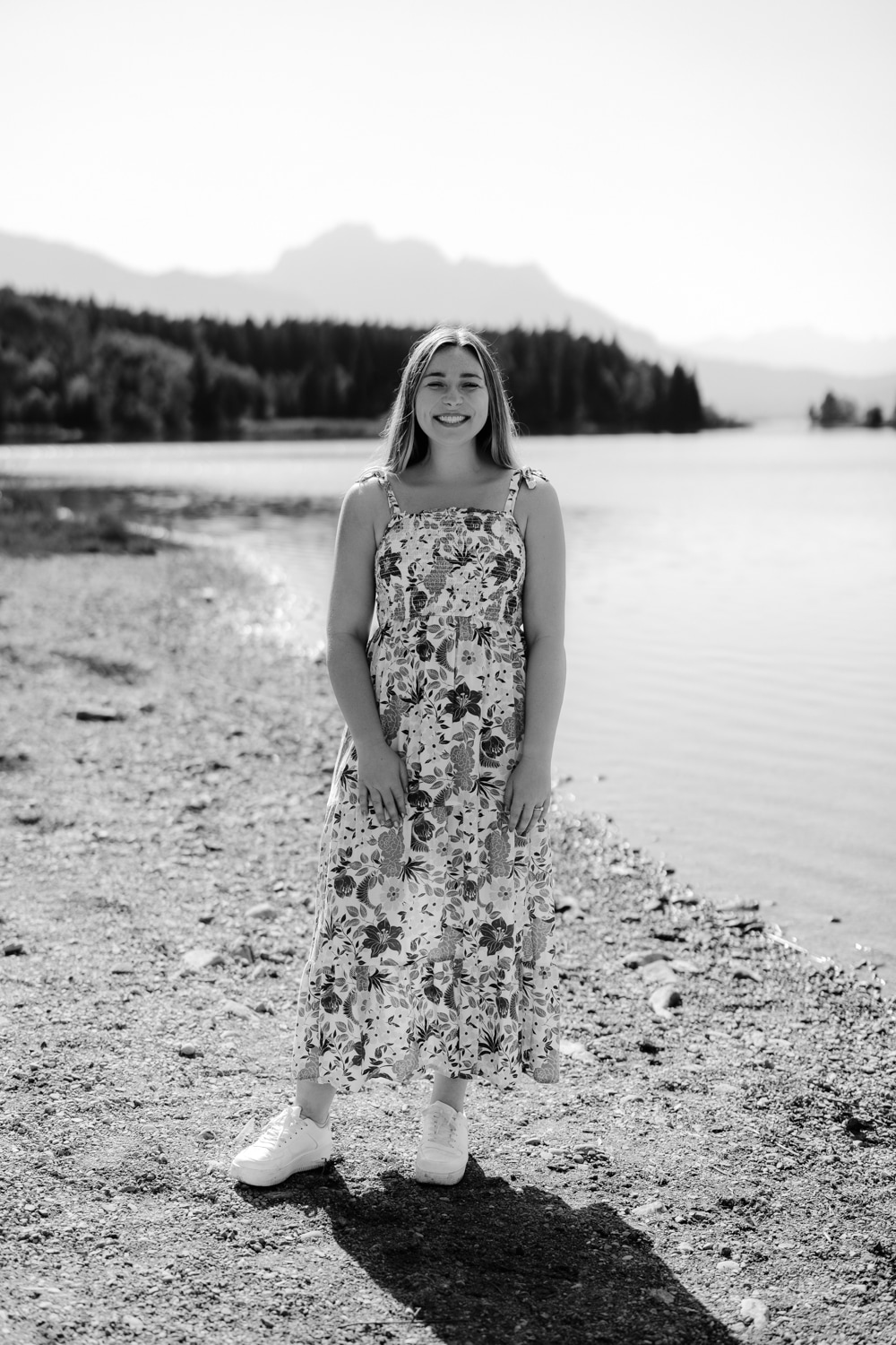 Afterwards, we take more pictures, using the different spots at Forggensee. On this beautiful day, more and more people come to this special spot on the lake, so at the end we meet the driver a little further away at the parking lot and take a few photos with the vintage car. When you have the opportunity, you have to take advantage of it!